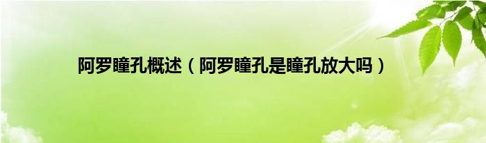 大家好,阿罗瞳孔概述,阿罗瞳孔是瞳孔放大吗很多人还不知道,现在让我们一起来看看吧!