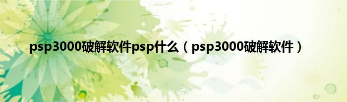 以上就是【psp3000破解软件psp什么,psp3000破解软件】相关内容。