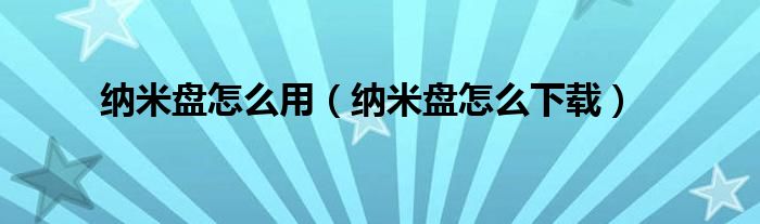 以上就是【纳米盘怎么用,纳米盘怎么下载】相关内容。