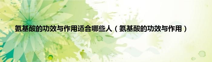 大家好,氨基酸的功效与作用适合哪些人,氨基酸的功效与作用很多人还不知道,现在让我们一起来看看吧!