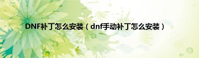 以上就是【DNF补丁怎么安装,dnf手动补丁怎么安装】相关内容。