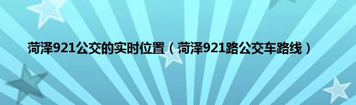 本文,菏泽921公交的实时位置,菏泽921路公交车路线到此就分享完毕,希望对大家有所帮助。