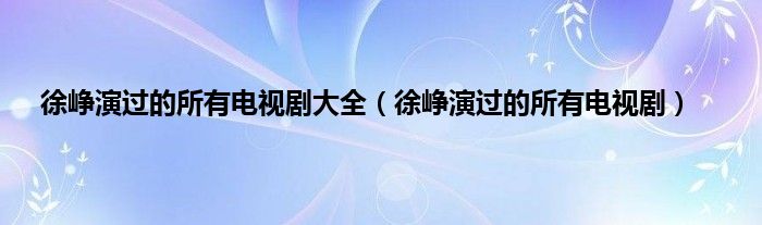 大家好,徐峥演过的所有电视剧大全,徐峥演过的所有电视剧很多人还不知道,现在让我们一起来看看吧!