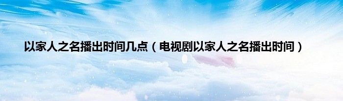 大家好,以家人之名播出时间几点,电视剧以家人之名播出时间很多人还不知道,现在让我们一起来看看吧!