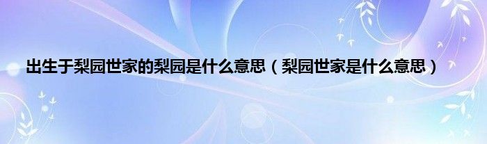 本文,出生于梨园世家的梨园是什么意思,梨园世家是什么意思到此就分享完毕,希望对大家有所帮助。
