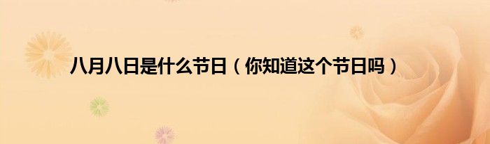 大家好,八月八日是什么节日,你知道这个节日吗很多人还不知道,现在让我们一起来看看吧!