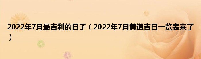 本文,2022年7月最吉利的日子,2022年7月黄道吉日一览表来了到此就分享完毕,希望对大家有所帮助。