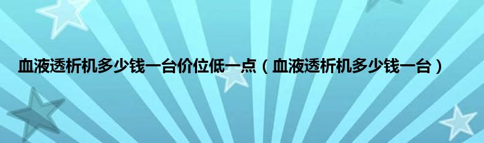 本文,血液透析机多少钱一台价位低一点,血液透析机多少钱一台到此就分享完毕,希望对大家有所帮助。