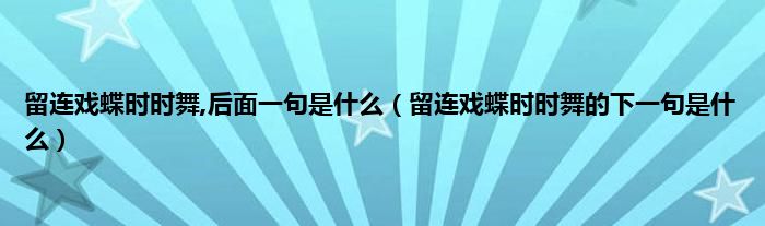 本文,留连戏蝶时时舞,后面一句是什么,留连戏蝶时时舞的下一句是什么到此就分享完毕,希望对大家有所帮助。