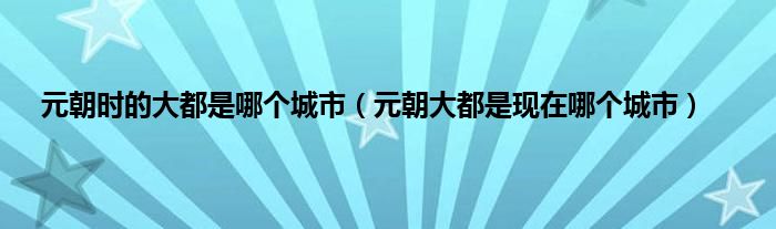 本文,元朝时的大都是哪个城市,元朝大都是现在哪个城市到此就分享完毕,希望对大家有所帮助。